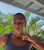 bright pink beads with teal statement bead and blue pops of color. secured with gold lobster clasp.
