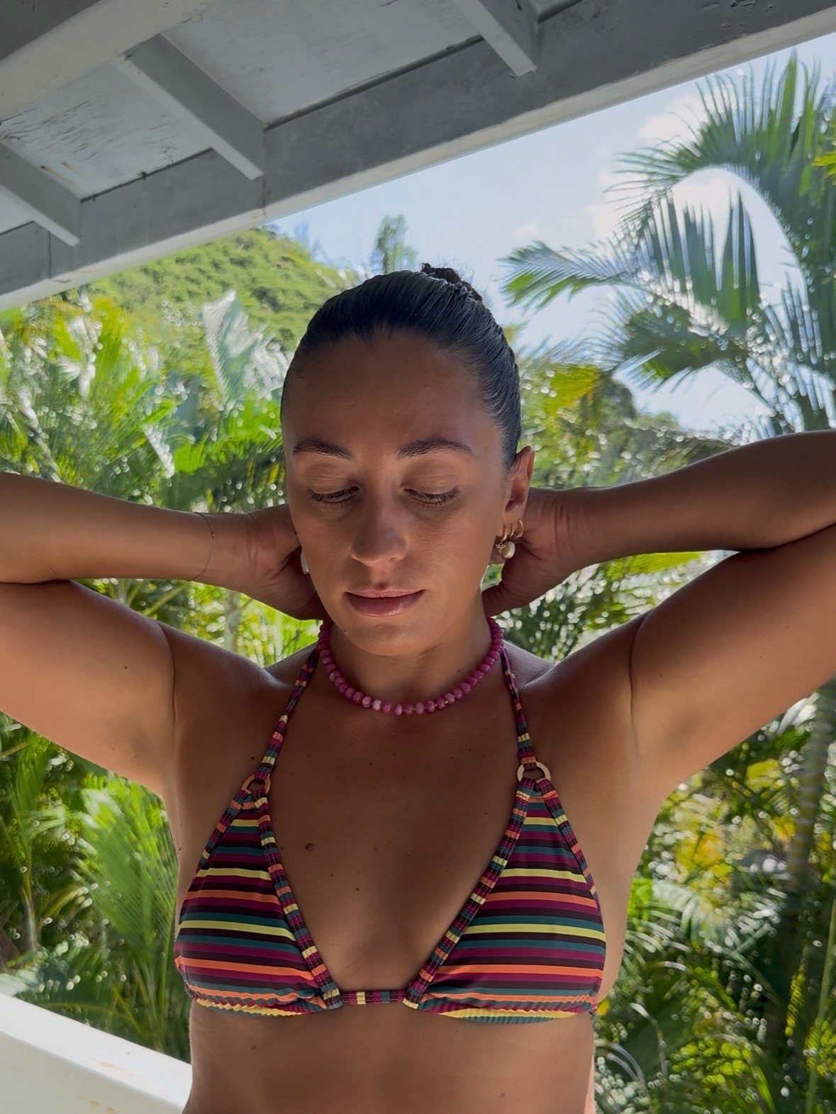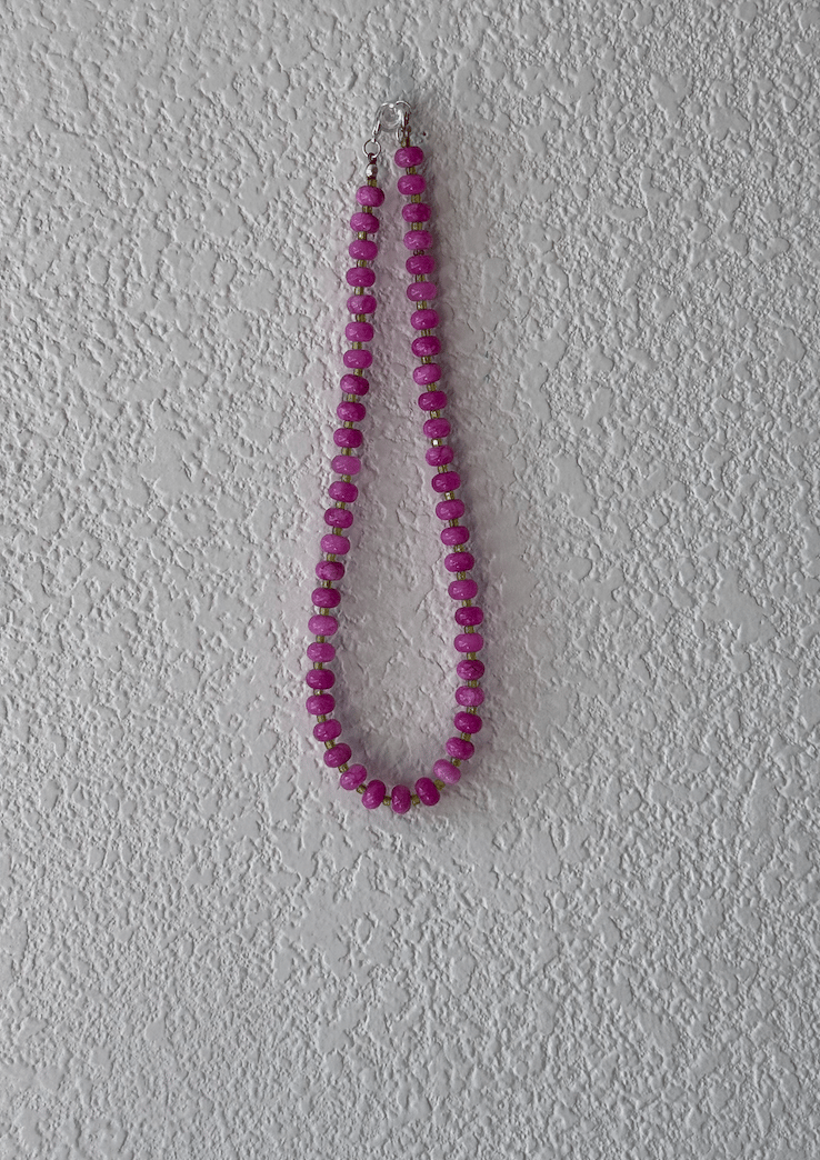 pink rondelle beads with lime green seed beads. fun chunky choker. secured with silver lobster clasp.